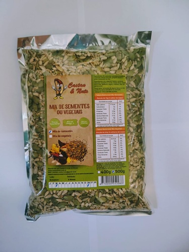 1 (um) pacote do Mix de Sementes contendo sementes de abóbora, pepitas de girassol, linhaça dourada, sementes de chia, gergelim branco e preto, com peso líquido de 500 g, frescos e prontos para o consumo.